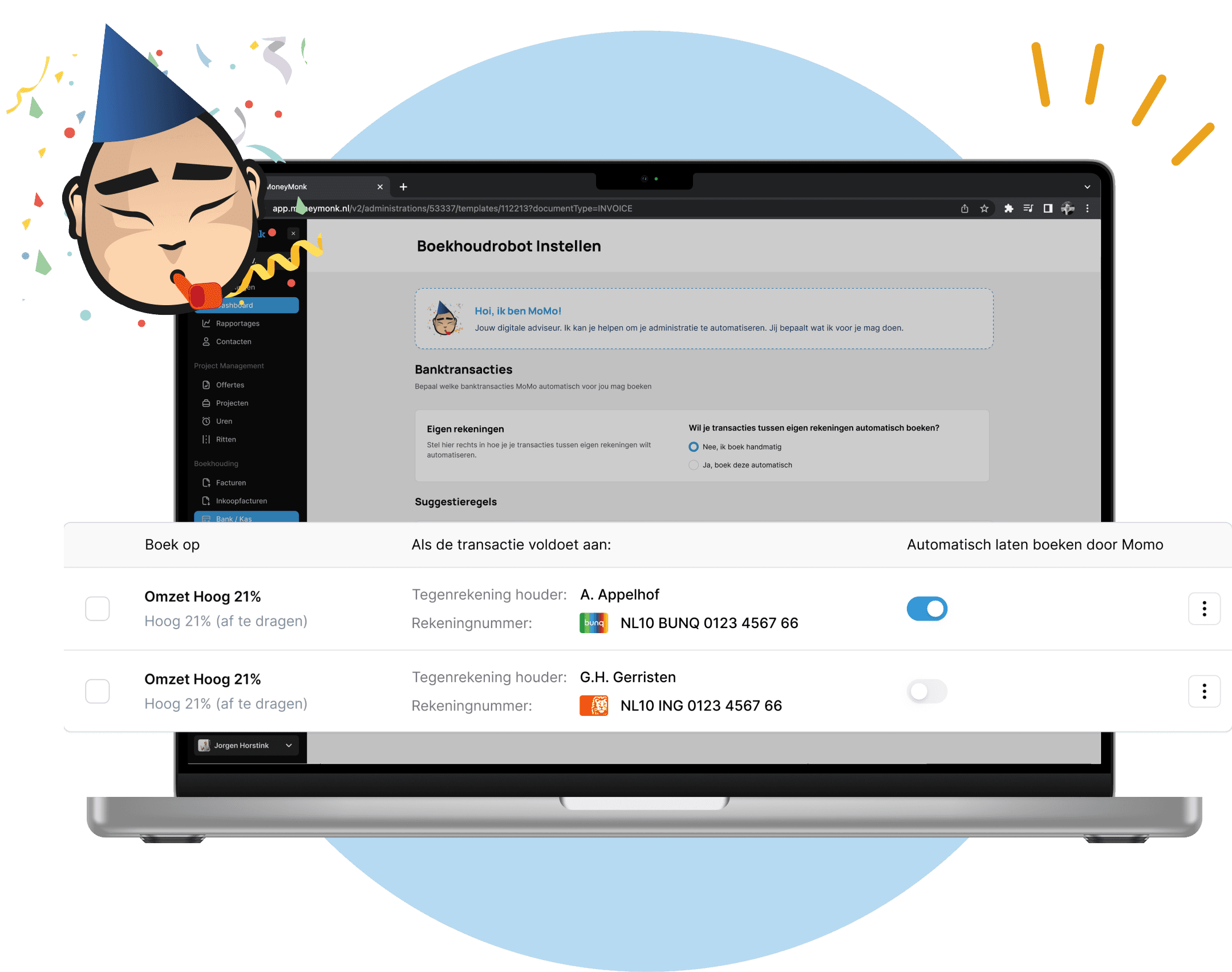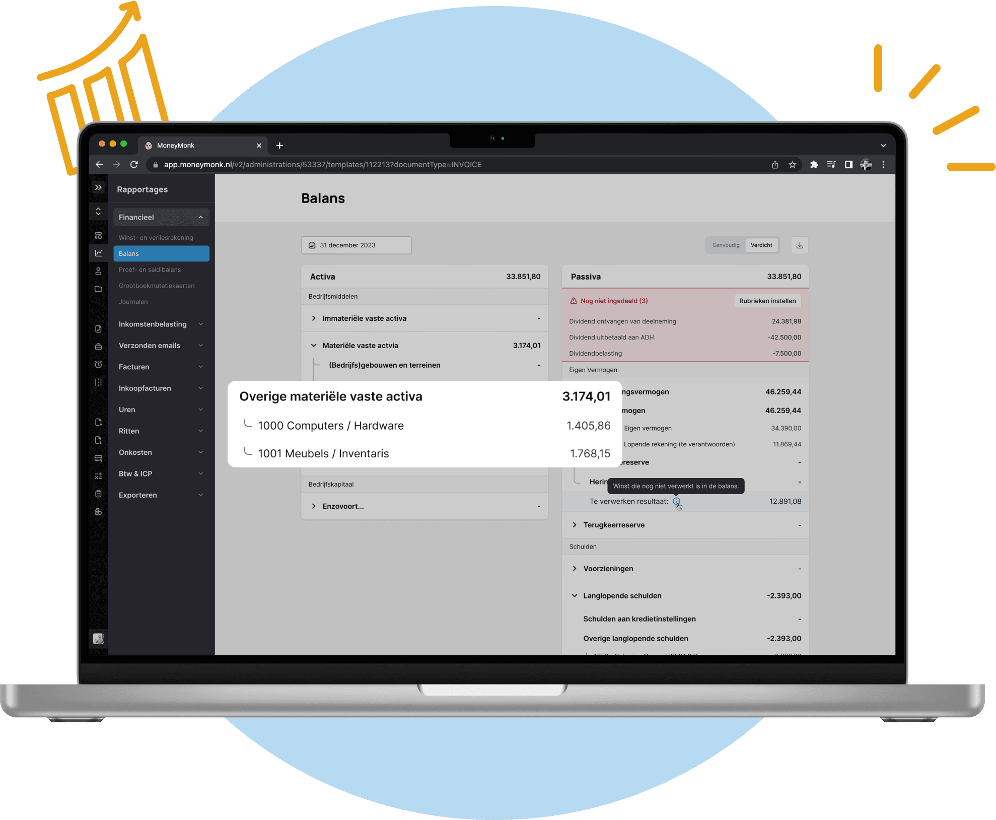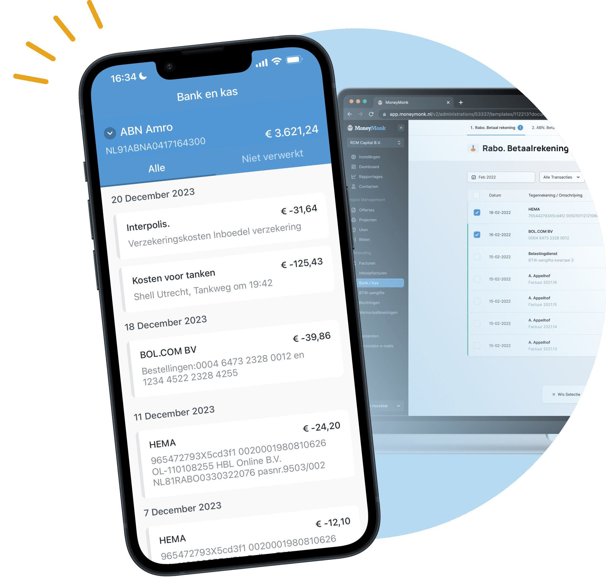 Met een bankkoppeling beschik je realtime over je transacties en ben je minder tijd kwijt aan data invoeren. MoneyMonk is bovendien het enige boekhoudprogramma dat de koppeling gratis aanbiedt. Dat scheelt je circa €5,- per maand per zakelijke rekening.
