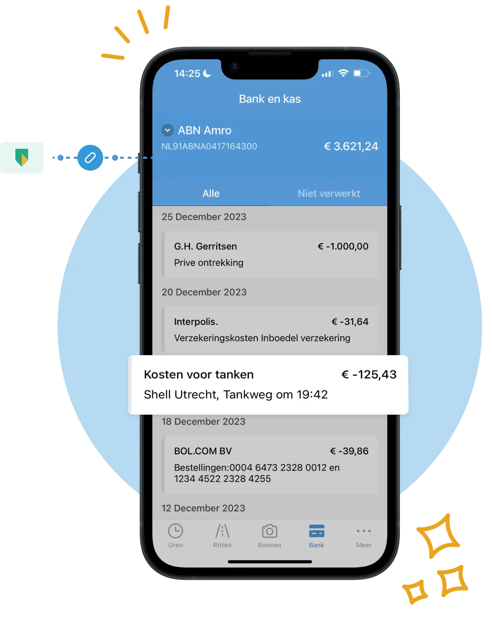De software herkent de transactie. Jij koppelt deze aan de bon of factuur.