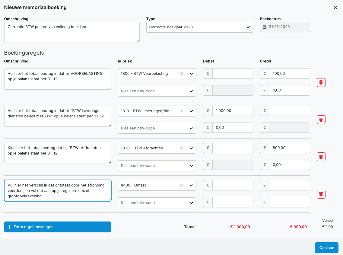 - Maak een nieuwe memoriaalboeking aan voor 31 december